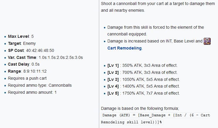 武器に火属性付与(パイロクラスティック)後、各種カートキャノン以外のスキル攻撃を挟むと最大限恩恵が受けられる。