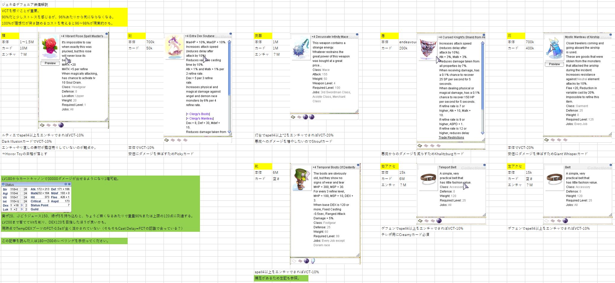 アクセサリーは他にも複数の候補がある。露店への出品が限られる思われる装備についてはエンチャントに関する項目へのリンクを以下に記載した。詠唱パーセントカット装備は、