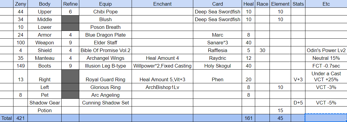 他にもHeal量増加装備(ちび教皇、頬紅セット)、