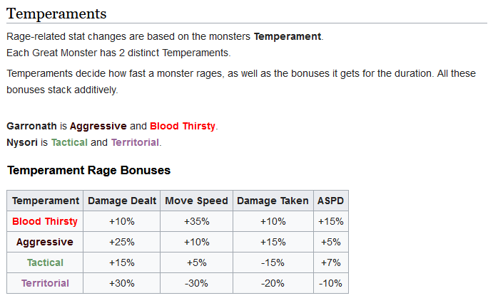 公式によれば、一部のスキル解説について、このスキルはグレートモンスターがレイジ状態にあるとき強化される(This ability becomes stronger )とある。また、レイジ状態にはグレートモンスターそれぞれについて異なる2バージョンがあり、強化の方向性が異なることも記載されている。