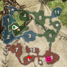 (ミニマップを拡大、ピンク色の顔アイコンがグレートモンスター、赤十字はプライマルモンスター)