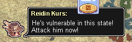 上の画像はテレポート、ではなくウィンドシールドである。”右上のヤツ”のコメントが入る点がテレポートと異なる。これは、ガロナスが受けるダメージが低下する、というギミックである(?)。注目すべきは、この状態で一定量のダメージを受けたタイミングでこれが解除され、ガロナスがスタン状態となることである。