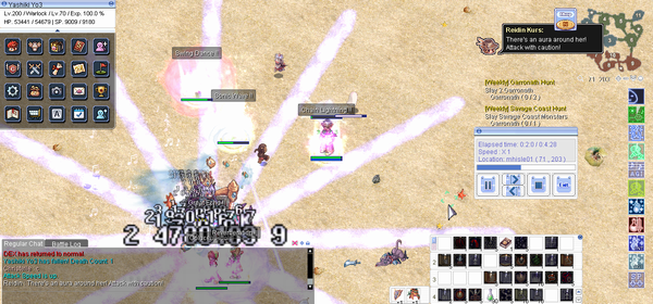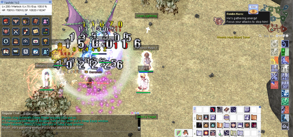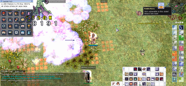 下画像、放射状のエフェクトはミスティッククリスタルの詠唱である。ひとたびクリスタルが設置されると、それを破壊するまではナイソーリへのダメージは無効化される(リリースボムの判定も消失する)。