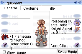 ポポリンカードとオボンヌカードの刺さったアクセサリーを用意したい。解毒とキュアーの私用により、ガロナスのスタック毒を1カウント低減することが可能である。カードの安さにそぐわぬ効果を有する。