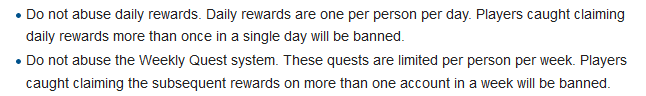 NovaRO: Wiki - Rulesの記載。ここでの「デイリーリワード」は広義の「デイリー」(いわゆる毎日やるやつ)ではなく、「メインオフィス・ログインボーナス」を意味するもの、と一般に解釈されている。