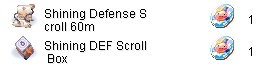 シャイニングディフェンススクロール(SDS)は、60分間バージョンと、30分間バージョン2枚いりのハコ、いずれかを選んで引き換えできる。大抵のコンテンツは後者で足りる。