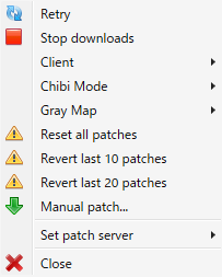 (左)ランチャーの余白右クリックで開くパッチオプション。(右)キャララクター表示のノーマルモードとチビモード。チビモードは