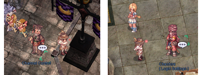 (左)メインオフィスの外に立つチャンネルセッティングNPC。(右)メインオフィスに入って右手に立つログインセッティングNPC。