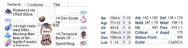 ≫純粋にパーセントカットのみで詠唱カットを目指すタイプより装備への要求は緩いが、ゲフェニアデビューは少し遅れる(とはいえパーカットもDexスータンのLv170を必要とするが)。