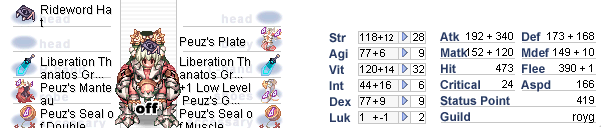 ≫経験値とゼニーのファーミングに有利なものを選んだ。また、継続的に狩りができるよう調整した。