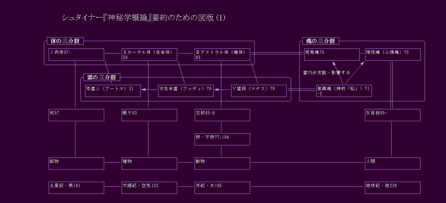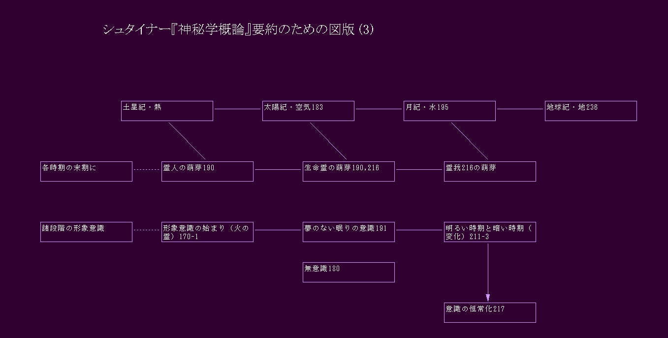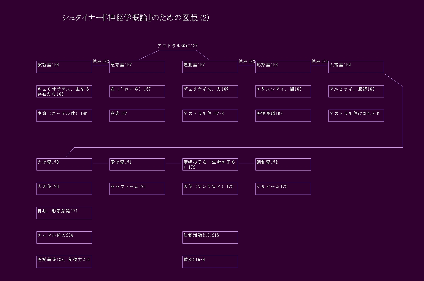 - ここには『神秘学概論』要約のための図版を掲載する。しかしそれぞれが大きいため見づらい配置となってしまっている。閲覧者にあっては何らかの方法で便宜を図られたい。