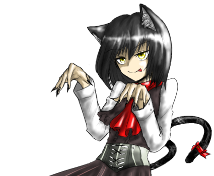 黒檀の毛並みをした猫耳と尻尾。頭髪はなだらかなボブカット。