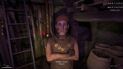 鉱山中層のオレンジキノコ粉末の自販機がある部屋にいる男。