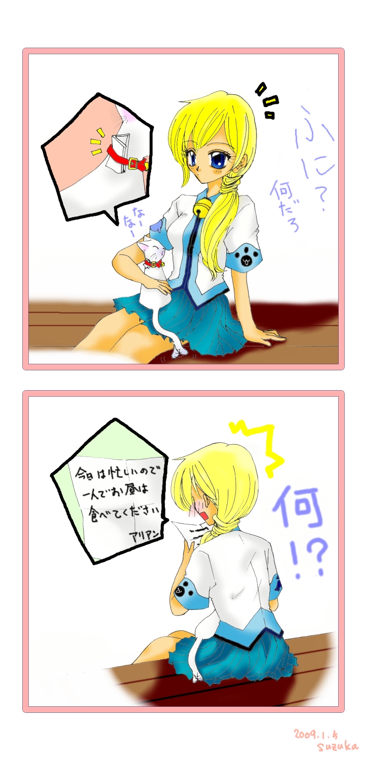 猫の首輪の手紙を見つけて内容を確認するまでを2コママンガ風にしてみました。
