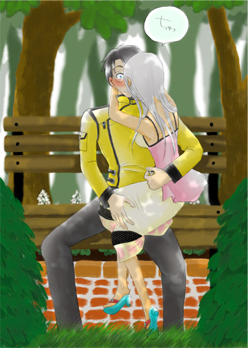 イラストを描くにあたり迷わず選んだお膝にのっけてちゅーシーン、あえてヤガミさんの顔が見える方向に致しました。