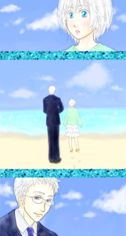 メノウちゃんの目に、エメラルドグリーンの海が輝いて見えていればいいなと思って描いてみました。