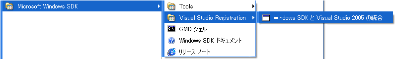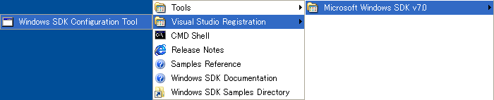 [スタートメニュー]-[Microsoft Windows SDK v7.0]-[Visual Studio Registration]-[Windows SDK Configuration Tool]の実行。