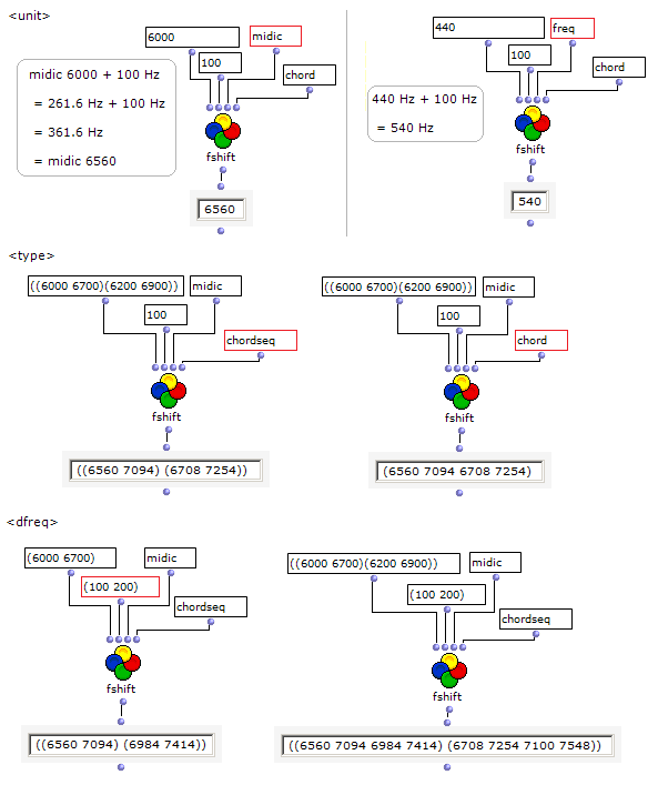 <dfreq>がリストの場合、<dfreq>[0]によって1和音、<dfreq>[1]によって1和音・・・、というようにして和音が作られ、