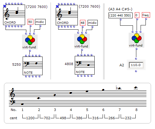 一般に、<chord>が不協和であるほど仮想基音は低くなる。