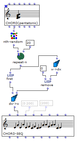 これはドレミソラという5音からランダムに20コ選んで、同音連打は削除するという例。