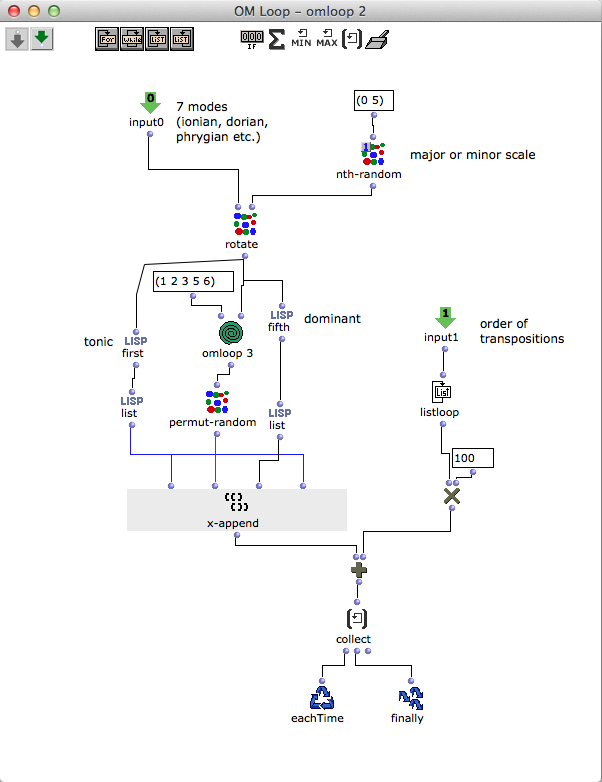 ここではlistloopとnthを組み合わせただけの単純なものである。メインパッチ上であればmapcarを組み合わせた方が処理が早いが、omloop内でさらにループを組む場合は、この方が確実に処理を行える。