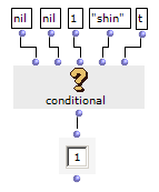 下例では1が最初のt的要素であり、それを返している。"shin"とtは評価が行われない。