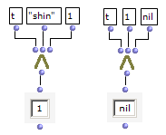 論理積 AND。引数のすべてがt的要素であるとき、最後のt的要素を返す。nilが1つでもあればnilを返す。