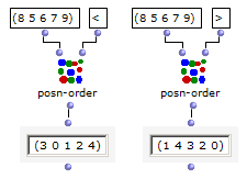 <list>を<test>でソートしたとして、そのときの各要素の位置番号。