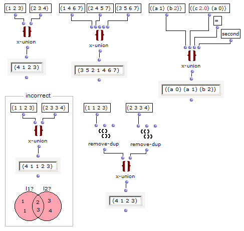 この関数はその動作をLispのビルトイン関数 union に拠っている。http://www.lispworks.com/documentation/HyperSpec/Body/f_unionc.htm