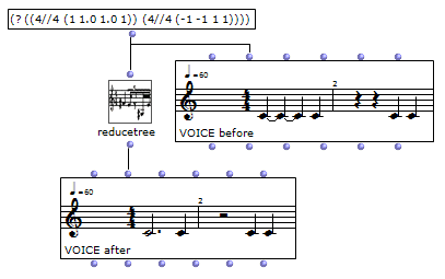 連続する休符やタイを結合してリズムツリーを単純化する。