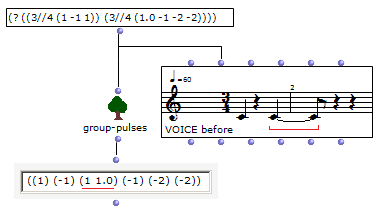 [0]<tree> | リズムツリー。 | (? ((|4//4| (1 (1 (1 2.0 1.0 1)) 1 1)) (|4//4| (1 (1 (1 2 1 1)) -1 1)))) |