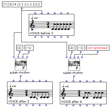 <output>がoptimizedの場合、出力を正しく解釈できるよう1小節でグループ化される。not-optimizedの場合、されない。