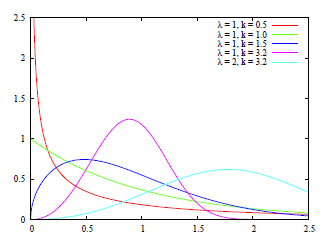 ワイブル分布。Weibull distribution。なんでこれWeilbull distributionって全部誤字ってるんだろう。