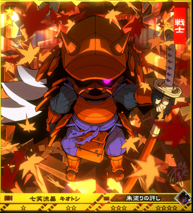 この形態からクラスチェンジ召喚によって赤備えのシデンにすることで、容易に朱塗りの許しの条件を満たすことができる。