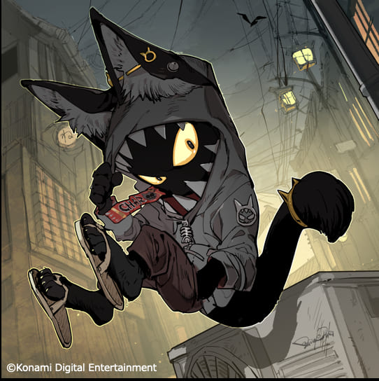 常に咥えている「おやつ」の元ネタは細長いパウチ状の見た目からして株式会社いなば食品の子会社「いなばペットフード」から販売されているネコ用おやつ『CIAOちゅ〜る』だろう。