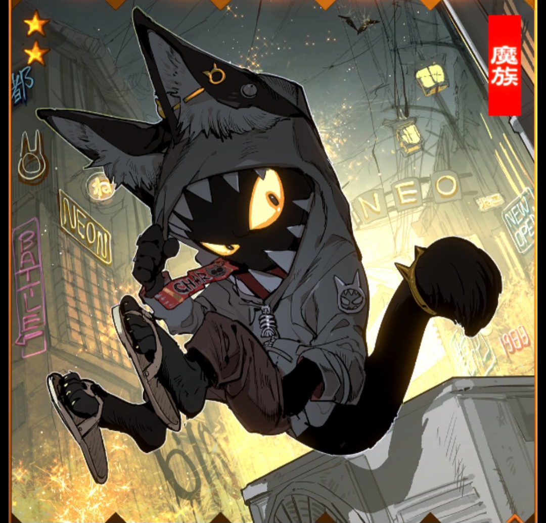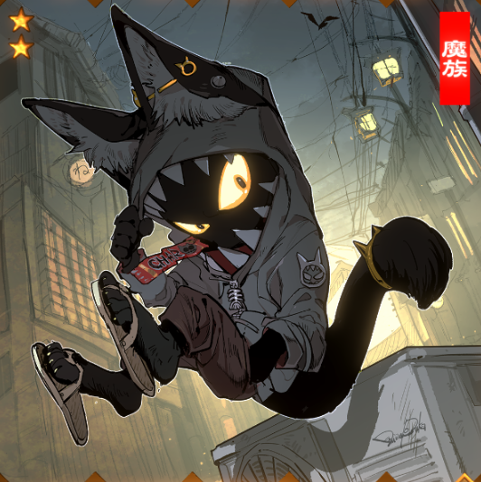 「お調子者でリアリストだがロマンチストな一面も持つトリックスター。闇の魔法「ダーク」を使う。魔法のおやつで☆(コマンドLV)を上げる。」