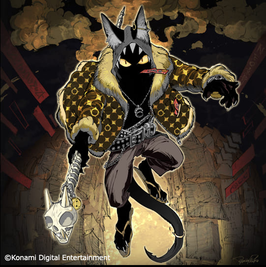 ブランド物のネコヴィトンのローブやオレックスの時計・杖を身に纏い、セレブで偉大なる大悪魔へと成長を遂げた…という妄想の姿のロイロ。