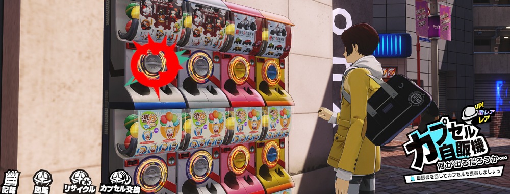 街の一角にあるカプセル販売機でカプセルトイを獲得することが出来る。