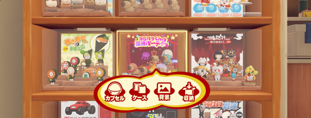 各シリーズの収集度が100%になると自在結晶と自宅のショーケースで使える背景が報酬として貰える。
