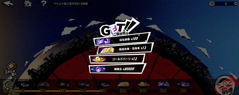 全ての目玉報酬と自在結晶を取るまでの必要累計ポイントは1000