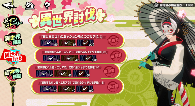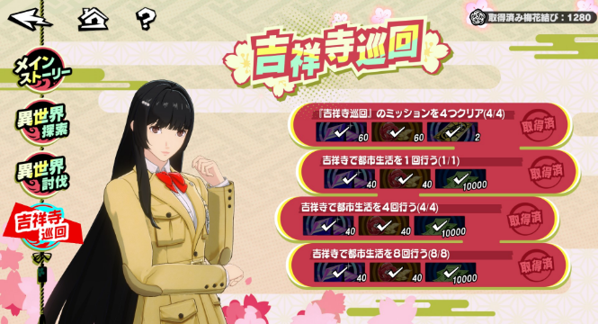 | 『吉祥寺巡回』のミッションを4つクリア | |