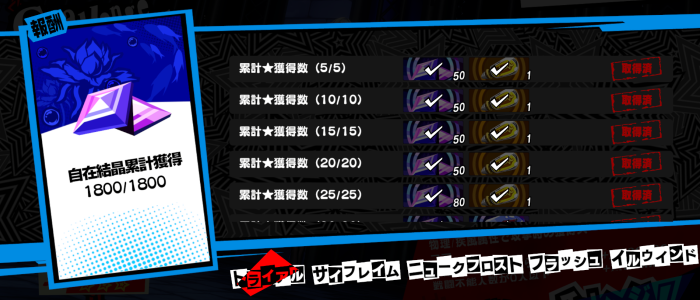 + | 累計★獲得数での報酬 |