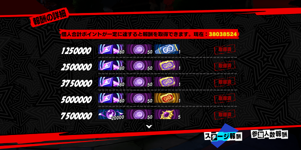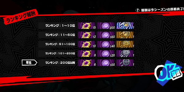 報酬には個人スコアと全体でのスコアがあるが石を貰えるのは個人スコアのみなので怪盗団でこれだけスコアを出せないと首ですみたいなシビアにする必要はない