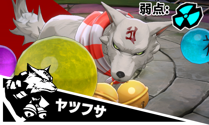 1.ヤツフサは『仁義八行の玉』を発動する。 『仁義八行の玉』:自身の全属性相性が耐性に変わり、与ダメージが上昇し、被ダメージが低下する。 また、4体のシャドウを召喚する。シャドウを撃破した時、ヤツフサは撃破されたシャドウの属性異常になる。 この効果は2ターン持続する。召喚されたシャドウの弱点・耐性は通常と異なる。 2.ヤツフサが『仁義八行の玉』状態にあり、かつ4種類の属性異常を同時に持っている場合、 『仁義八行の玉』状態を解除し、自身の防御力が低下する。 3.ヤツフサが虚弱状態に入ると、4体のシャドウを撃破し、『仁義八行の玉』状態を解除する。 |
