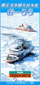 白銀の氷原を割りながら進む「おーろら」は大迫力で、流氷を身近に体験できます。(「道の駅」前の網走川から運行)