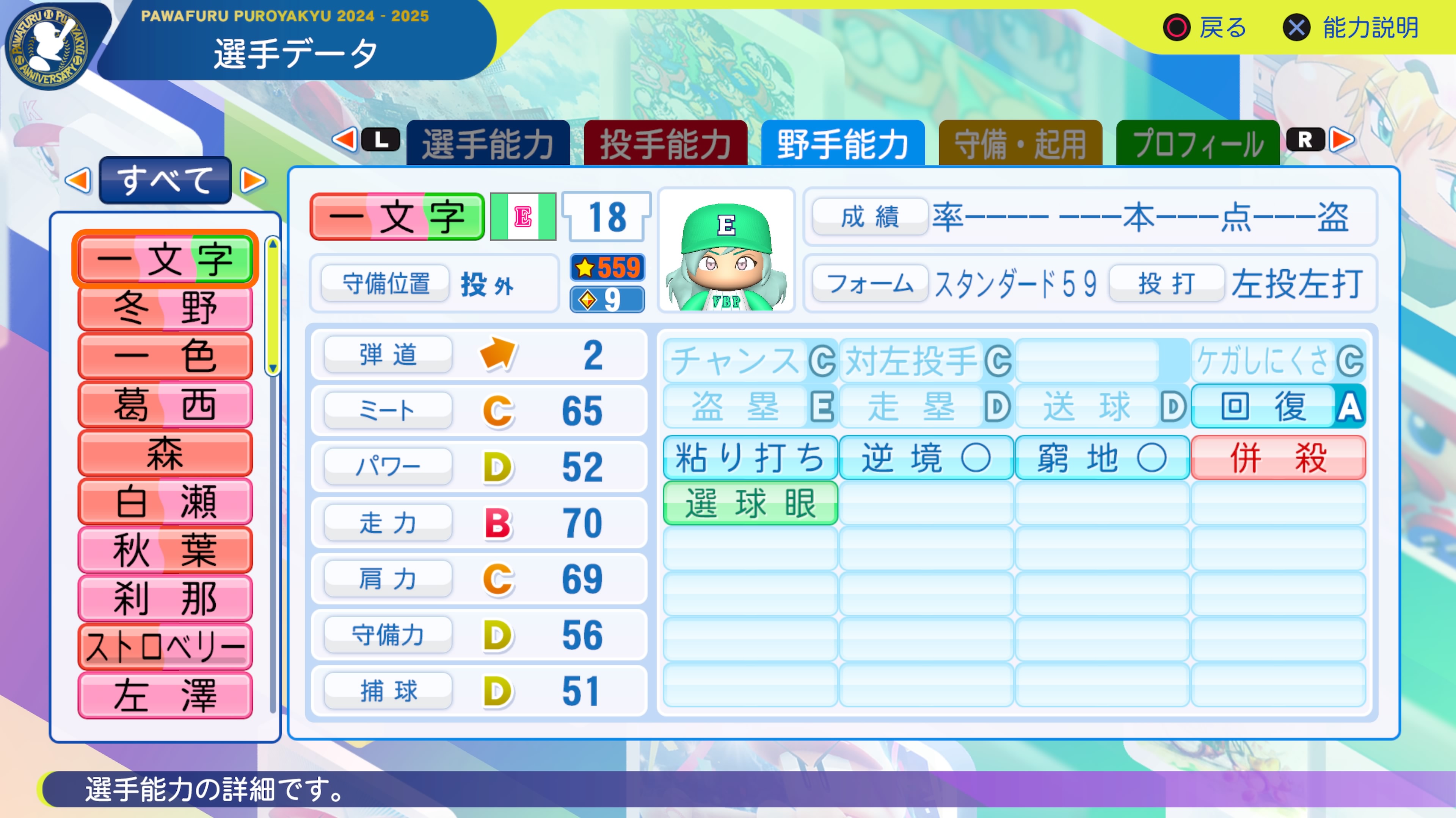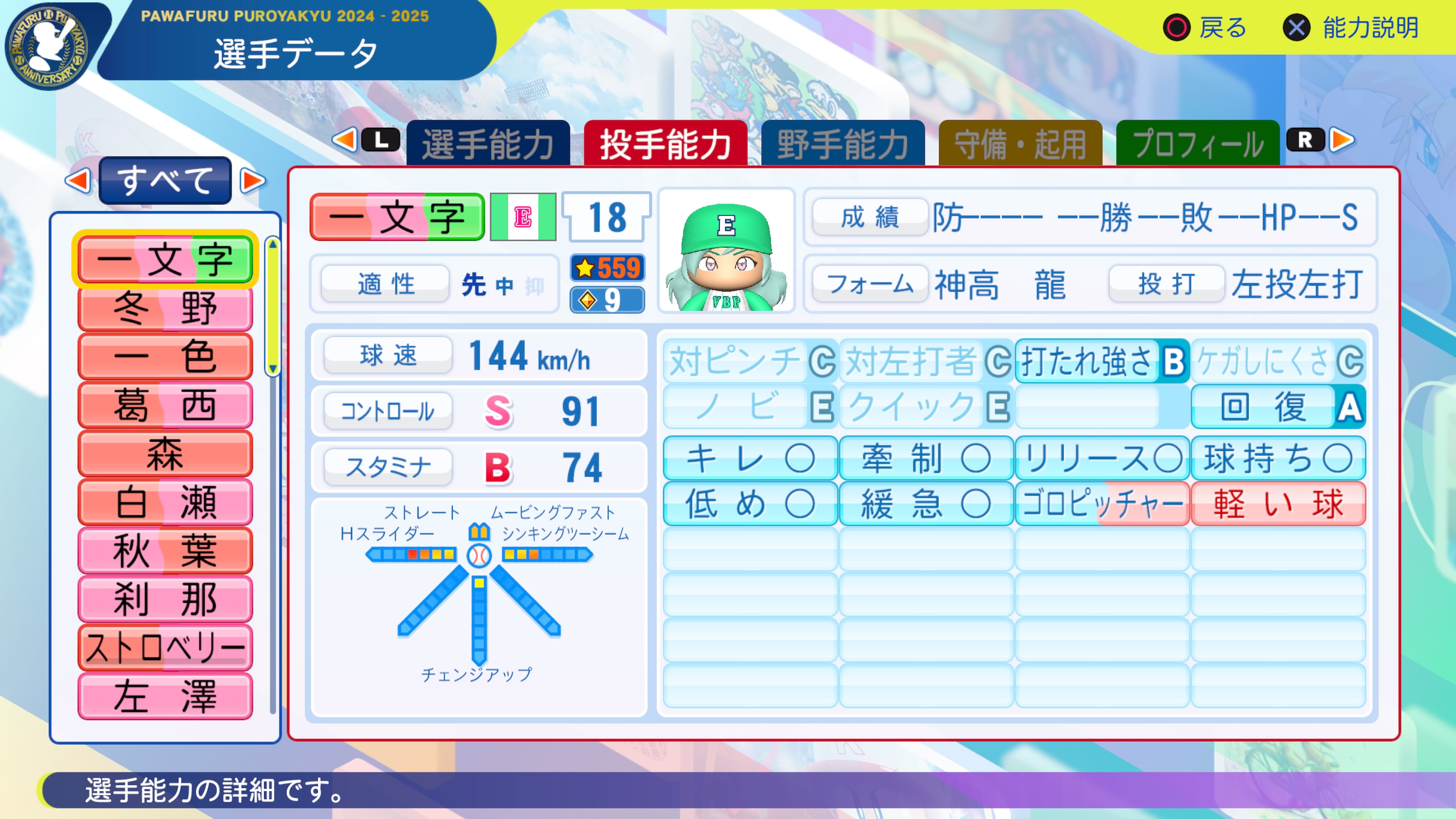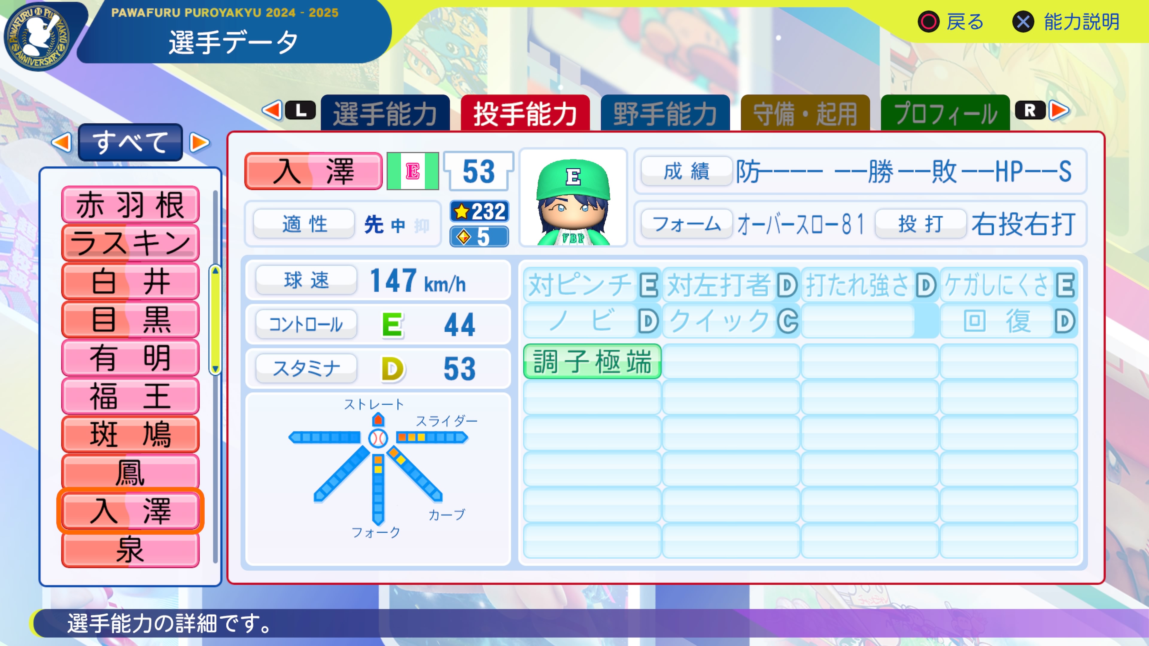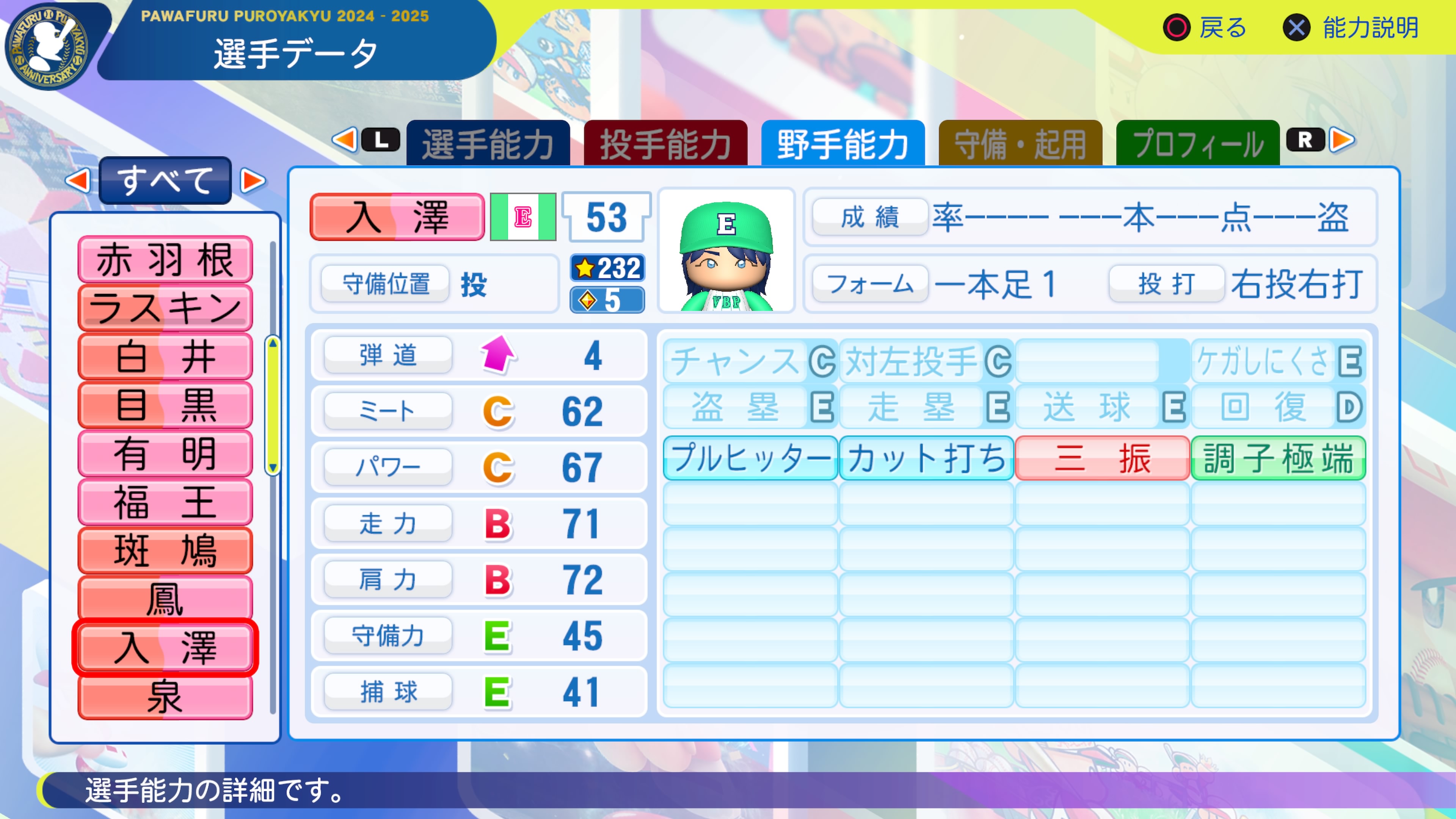 あとはペナントで使うと年齢層とバラバラの成長タイプが機能して面白いと思います。
