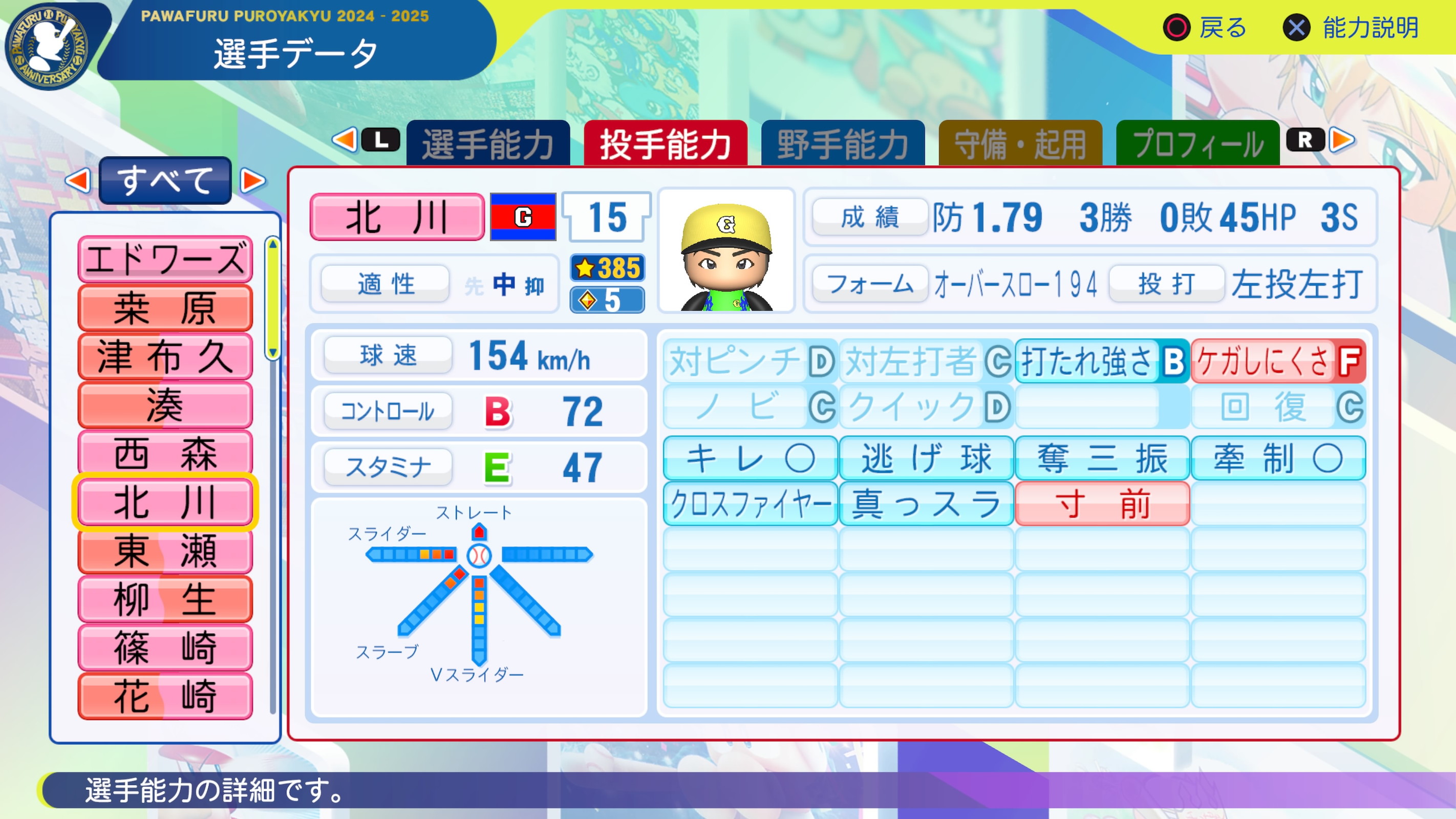 安定した制球力と唸るクロスファイヤーのストレートで相手打者を翻弄する。