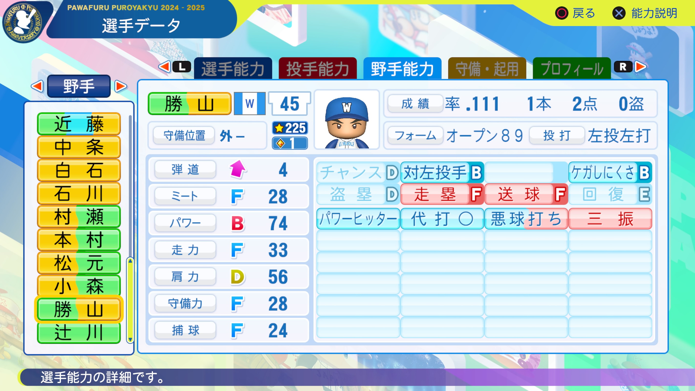 また、入力している成績は2025年度に記録したものという設定なので、能力との齟齬が見えることがあります。ご了承ください。