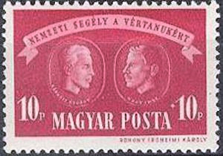 最初の切手/出身国最初の切手(1945年、ハンガリー発行)=右