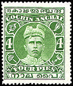 最初の切手/出身国最初の切手(1911年、インド・コーチン発行)